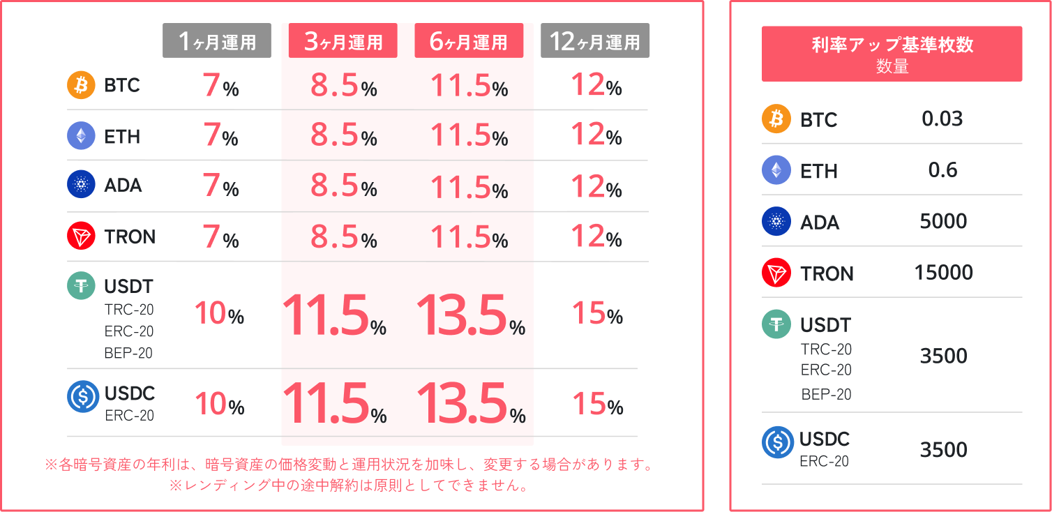 一定額以上の資産をまとめてレンディングすることで、適用金利が大幅にアップ。