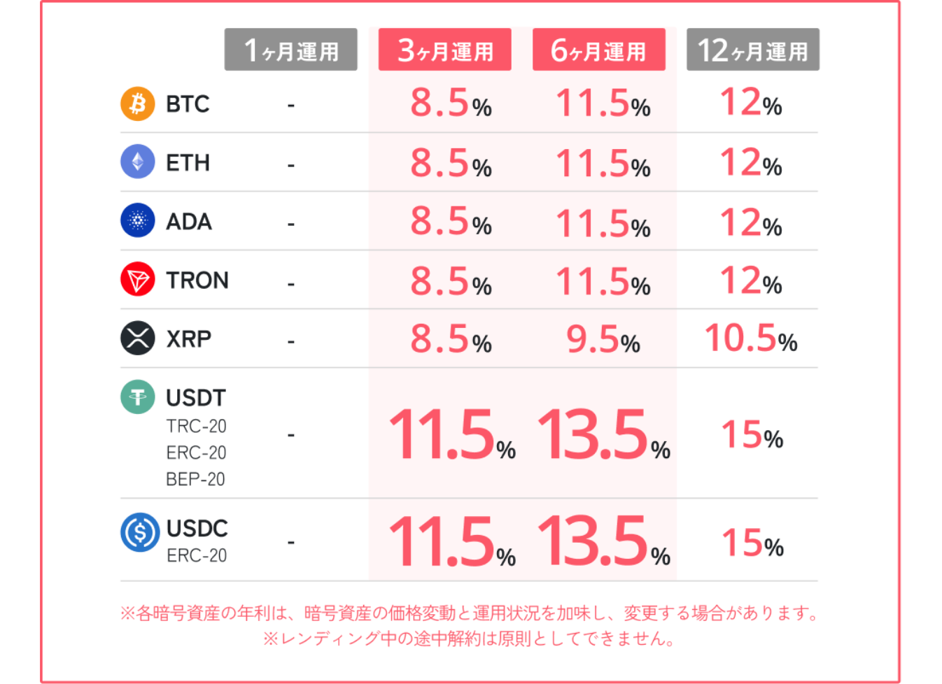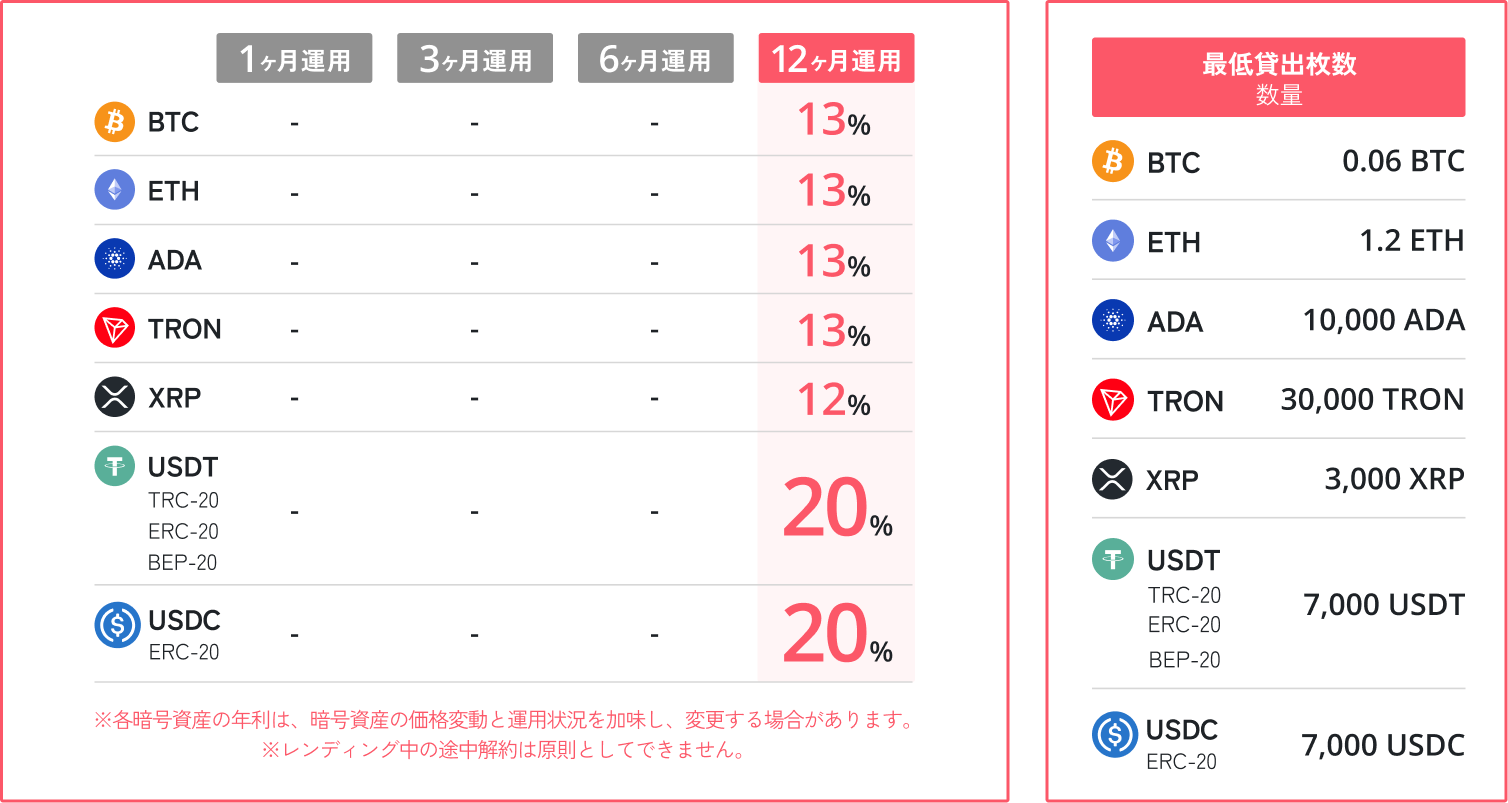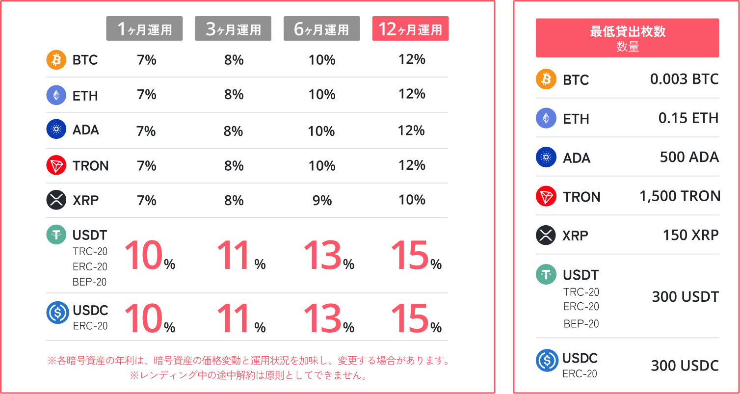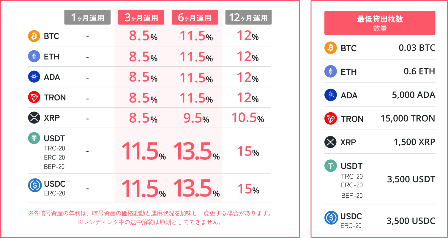 一定額以上の資産をまとめてレンディングすることで、適用金利が大幅にアップ。