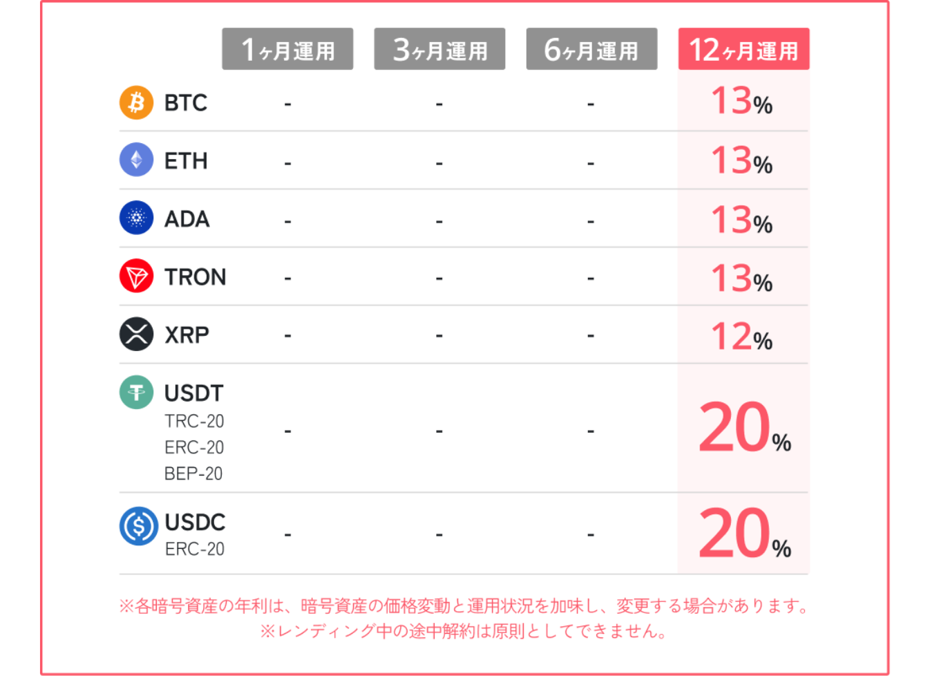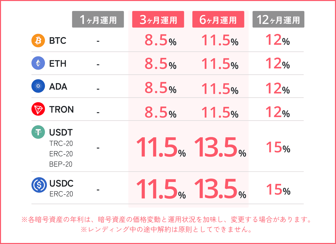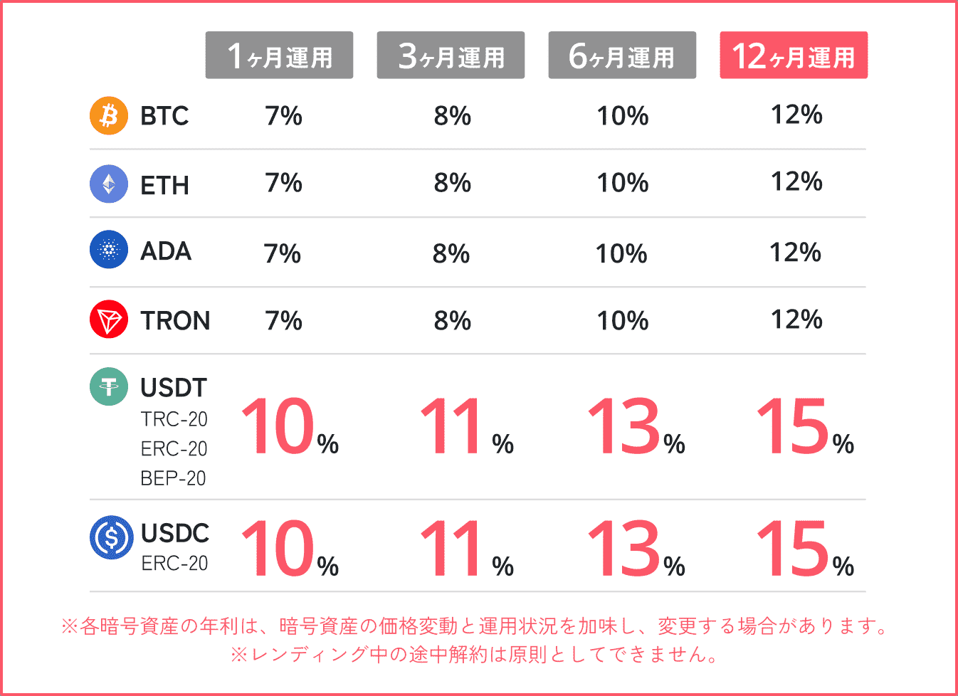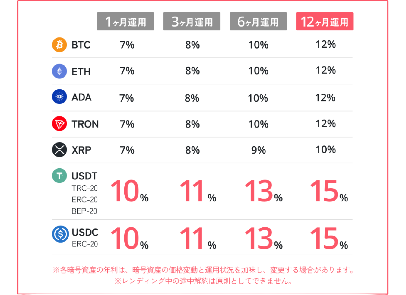 一定額以上の資産をまとめてレンディングすることで、適用金利が大幅にアップ。