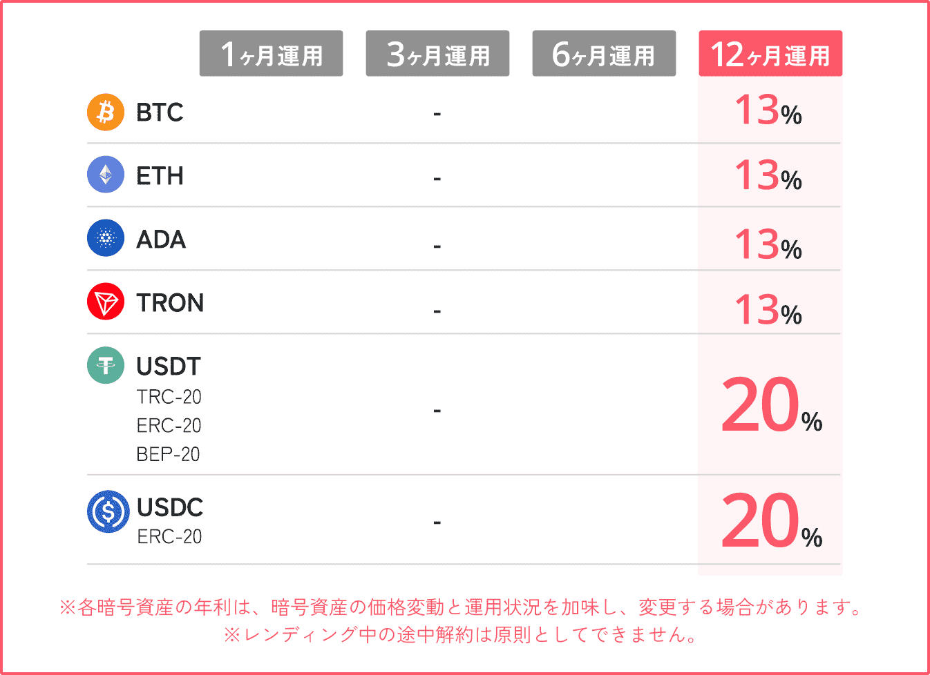 暗号資産を預けるだけで、世界水準の利回りを目指せる新しい運用サービスです。資産の安全性とリスク管理を最優先に据え、独自の分散投資組み合わせによってお客様の暗号資産を着実に成長させます。